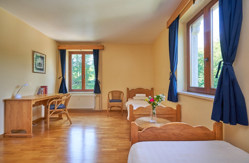 У нас есть номера как в Ретрит-центре Радхадеш, так и в Колледже Бхактиведанты. В Колледже Бхактиведанты доступны одноместные номера, но в отличие от других — в этих номерах ванная комната находится в коридоре и используется совместно с другими гостями.